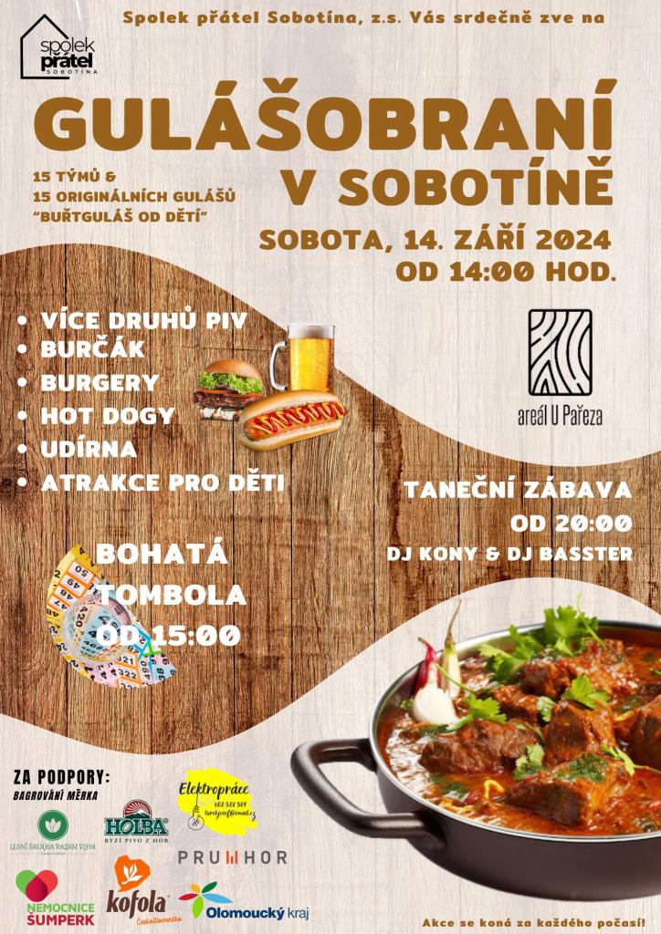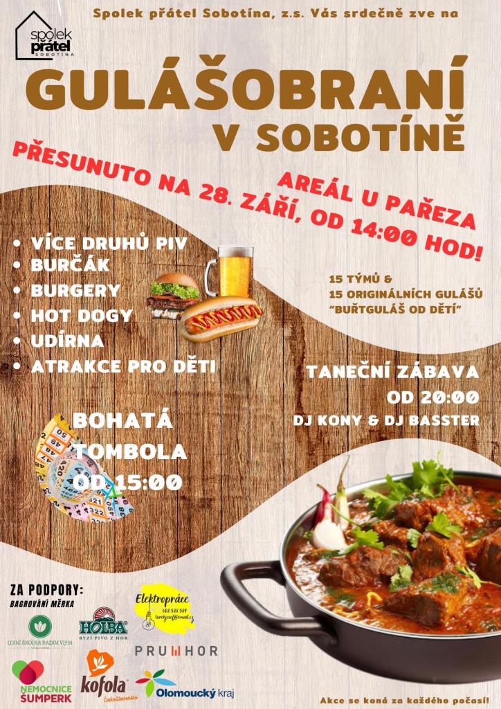 Spolek přátel Sobotína, z.s. Vás srdečně zve na "Gulášobraní" v Sobotíně, AKCE PŘESUNUTA NA 28.9.2024 od 14:00 hod.
