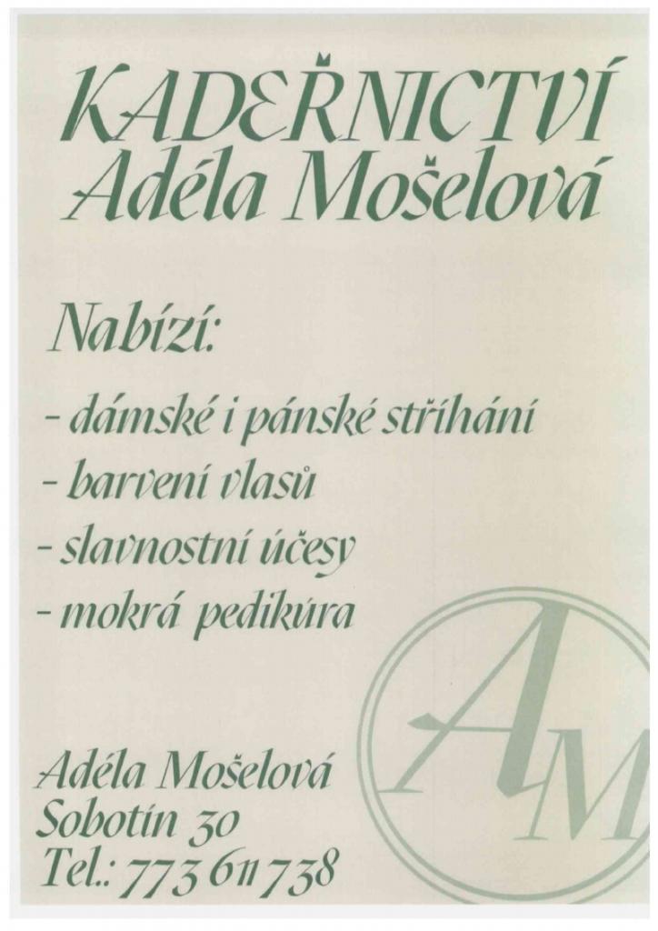 Nabídka služeb - kadeřnictví v Sobotíně  1