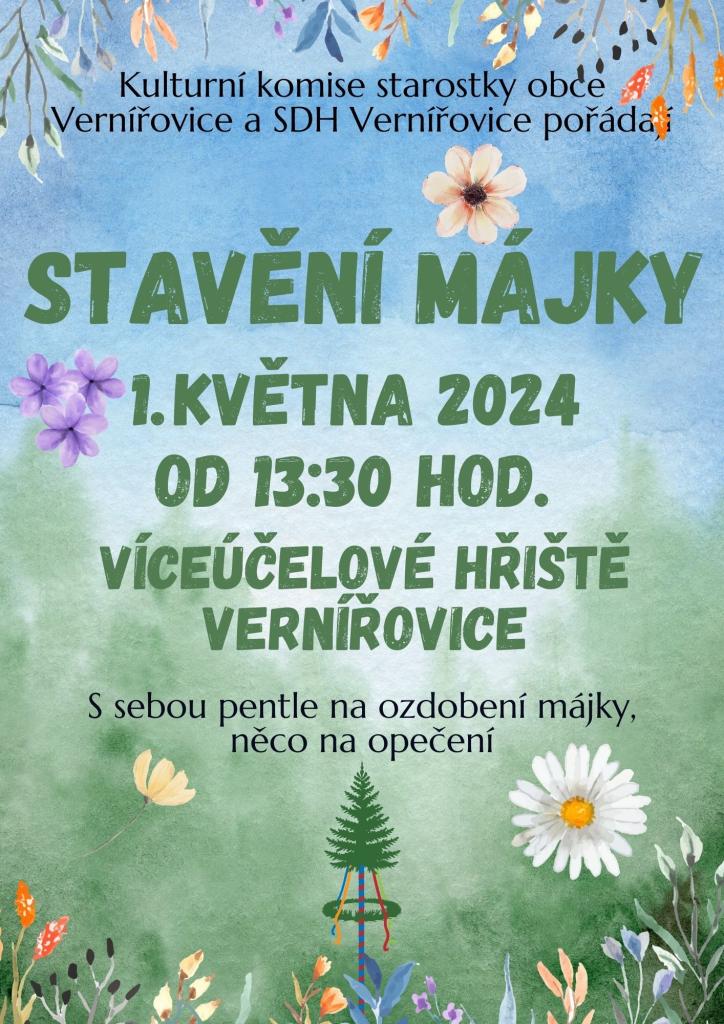 Kulturní komise starostky obce Vernířovice a SDH Vernířovice pořádají "STAVĚNÍ MÁJKY", ve středu 1.5.2024 od 13:30 hod. víceúčelové hřiště.