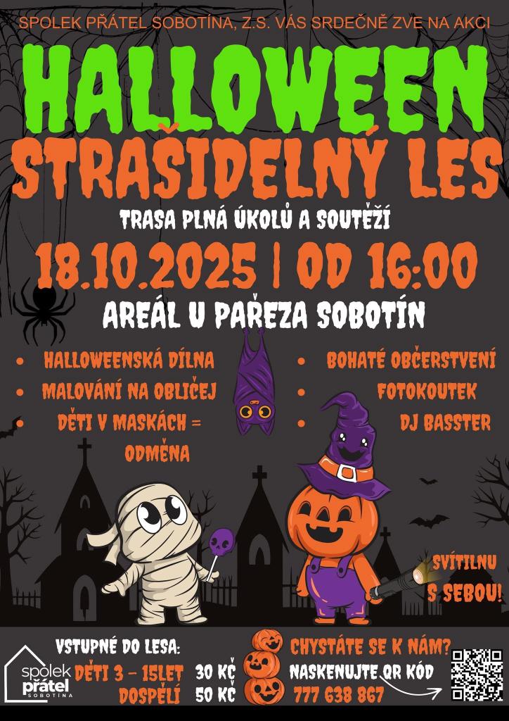 Spolek přátel Sobotína zve na akci: "HALLOWEEN STRAŠIDELNÝ LES" - sobota 18.10.2025 od 16:00 hod. areál U Pařeza Sobotín