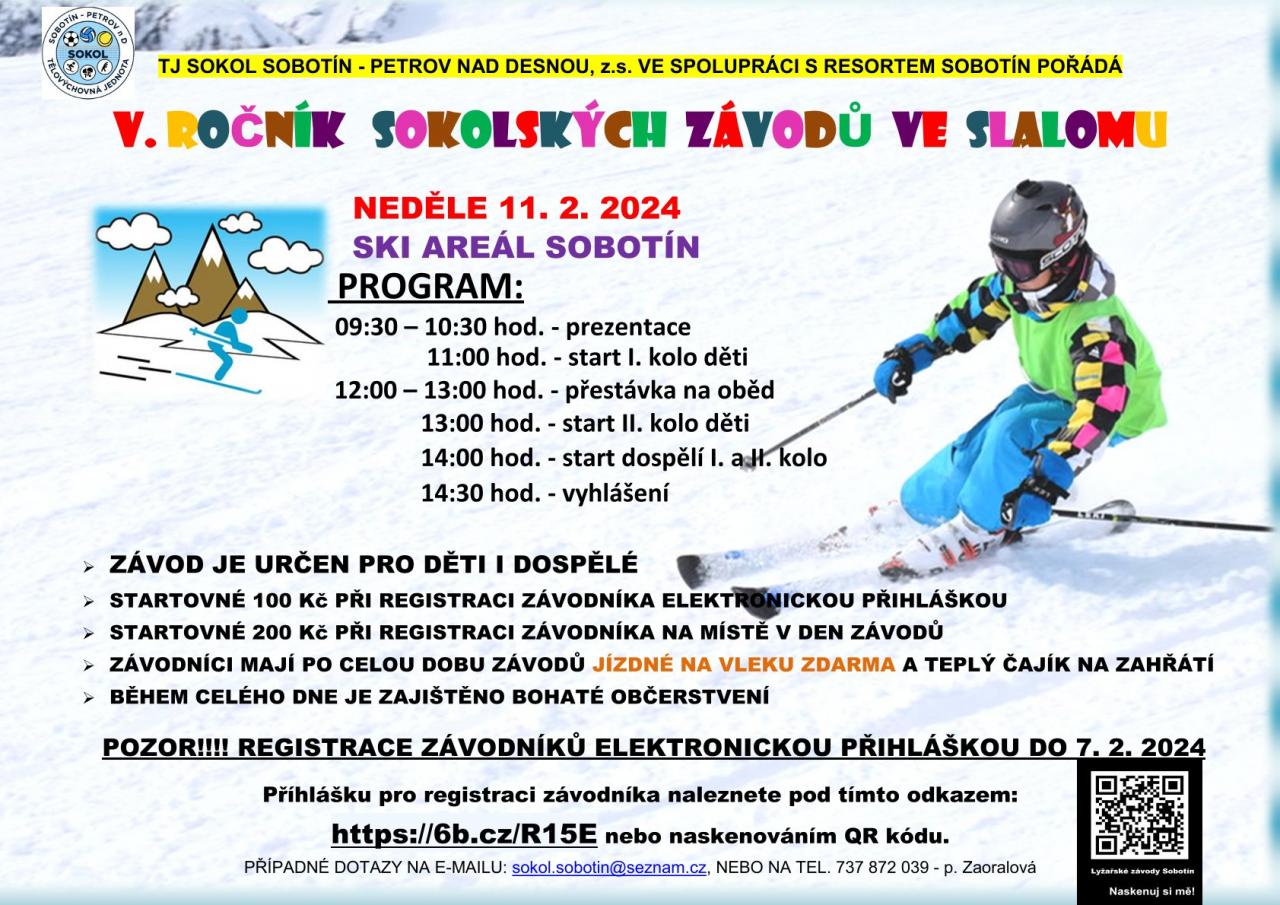 TJ Sokol pořádá v neděli 11.2.2024 závod ve slalomu, pro děti i dospělé.